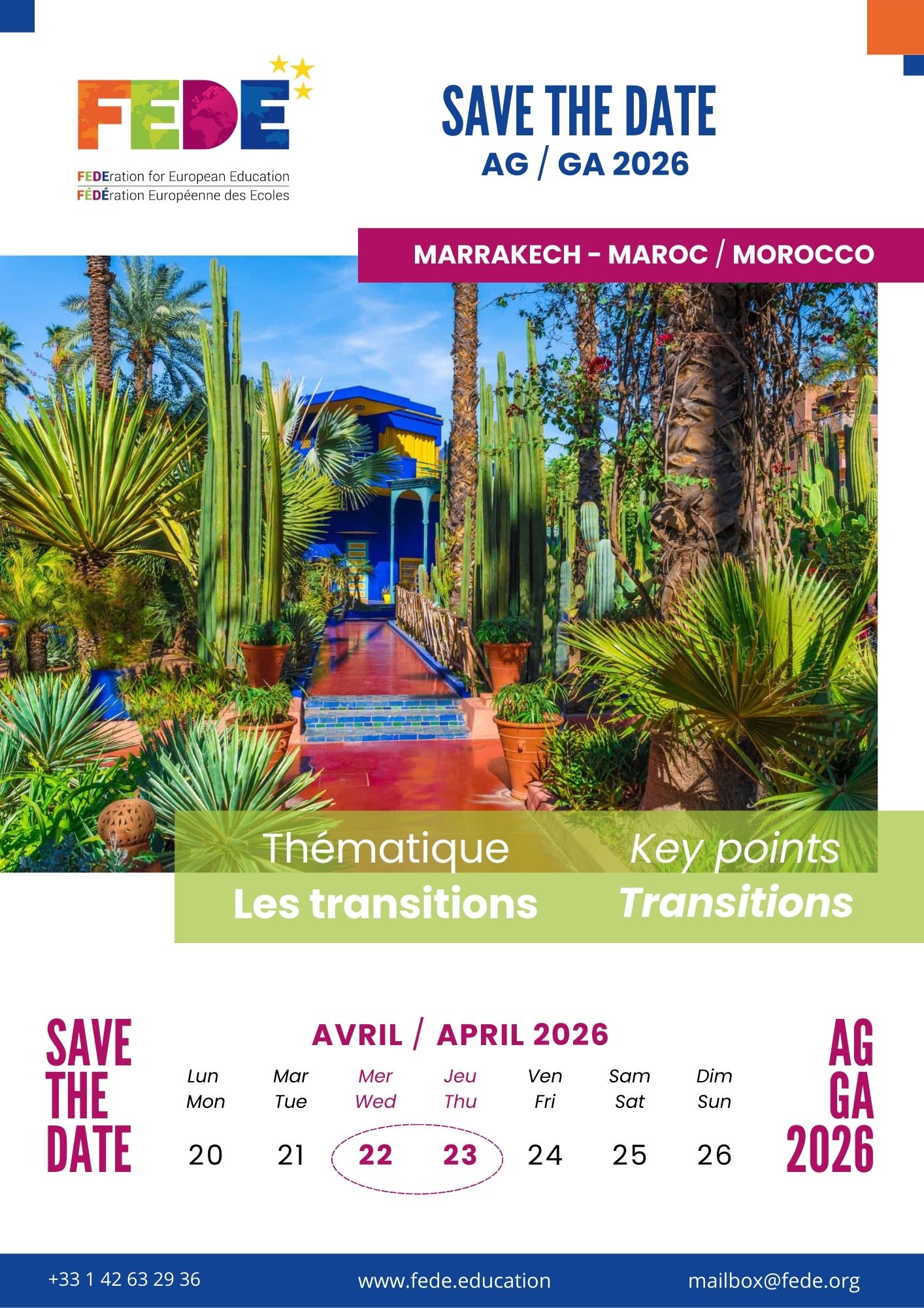 The FEDE General Assembly will take place in Marrakech on Wednesday 22 and Thursday 23 April 2026